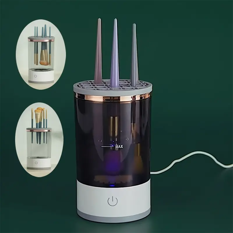 AutoPro USB quvvatlangan avtomatik makiyaj cho'tkasi tozalagichi, elektr quritgich bilan, bitta tugma bilan boshqarish. Batareyasiz va alkogolsiz bo'lgan portativ aksessuar.