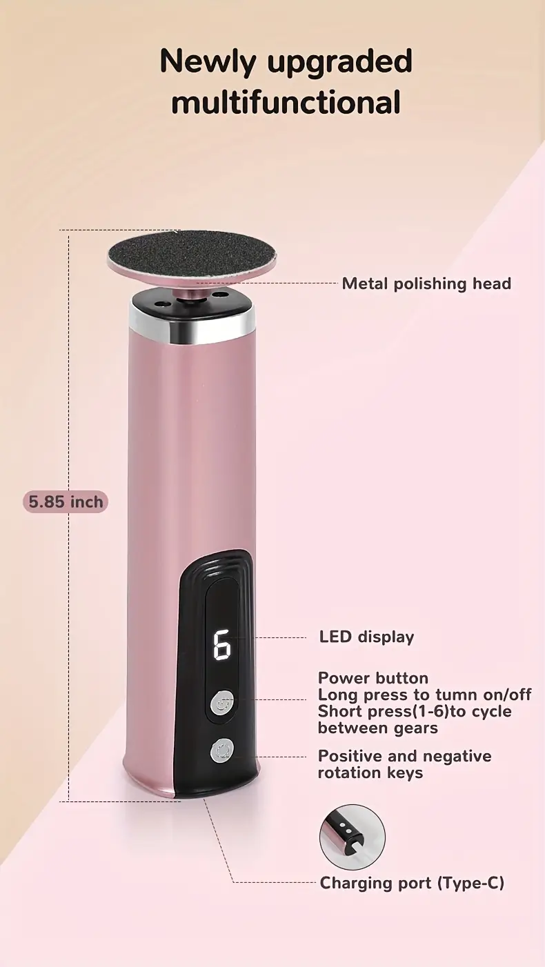 Elektr 2-in-1 tirnoq fayli va oyoq parvarishi vositasi, oyoq qattiqliklarini olib tashlash to'plami bilan. Qayta zaryadlanadigan pedikur vositalari erkaklar va ayollar uchun mos, engil bej rangdagi oyoq va oyoq tirnoqlari uchun ideal.