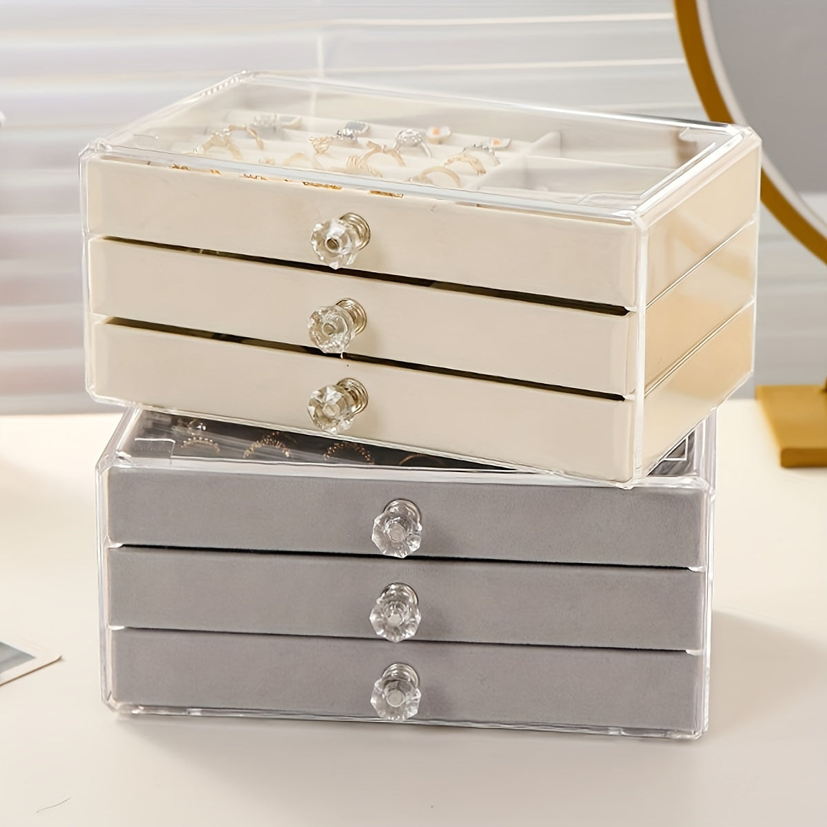 Large Wooden Jewelry Organizer with 3 Layers for Earrings Rings Necklaces and Bracelets
