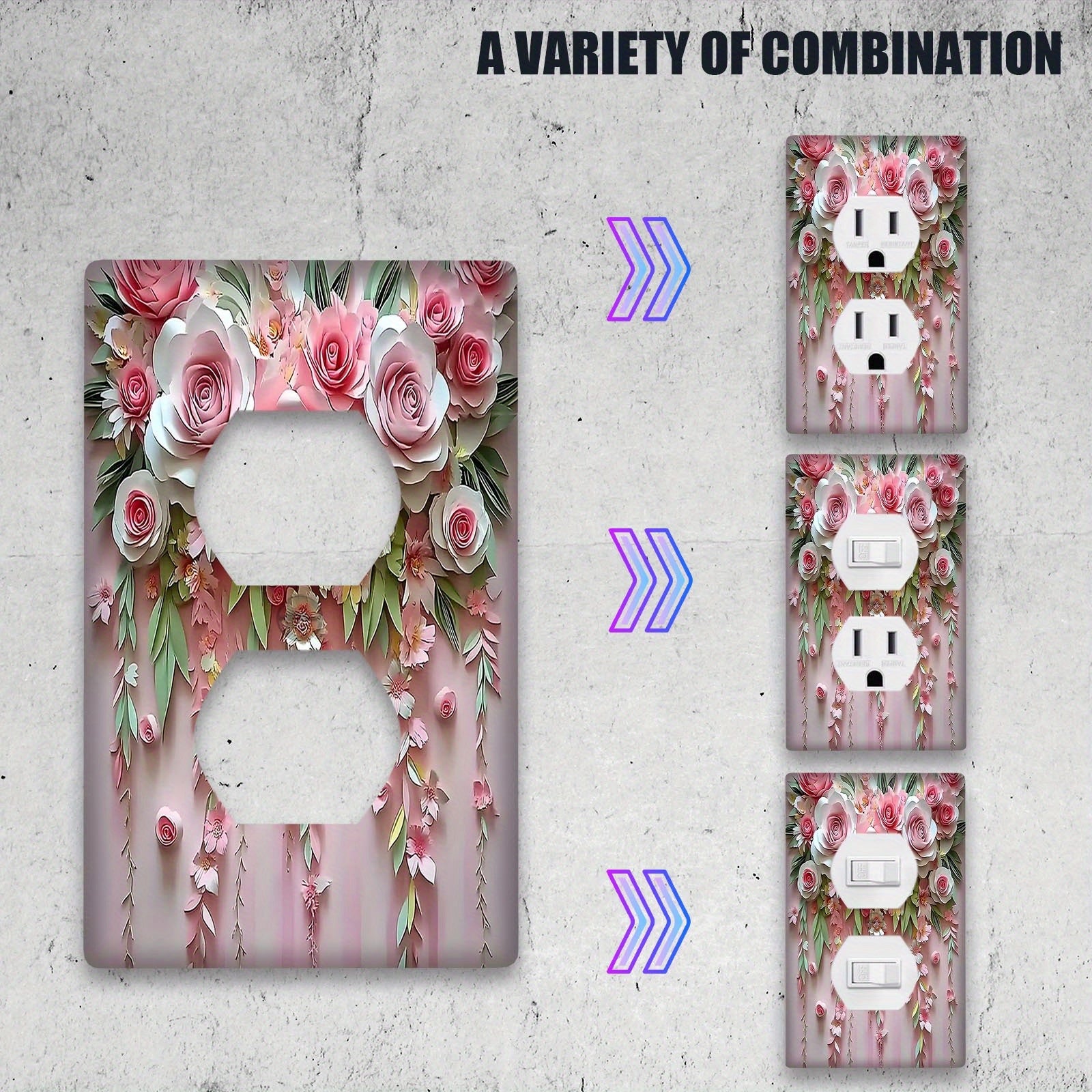 3D Floral Botanical Decorative Outlet Cover Pack of 1 No Power Needed Easy to Clean