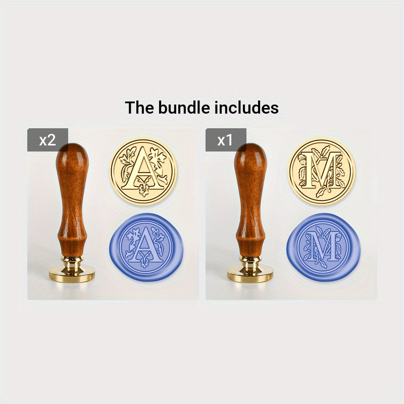 Wax Seal Stamp Set with 26 Letters Brass Head and Retro Wood Handle for Invitations and Gift Wrapping