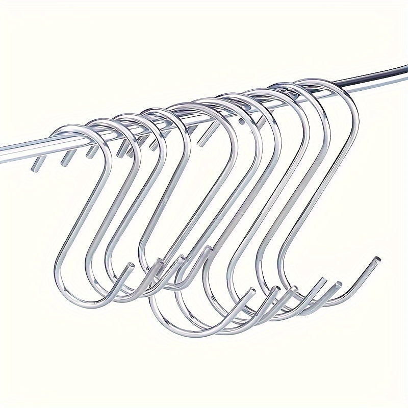 10 Stainless Steel S-Hooks for Kitchen Bathroom and Bedroom Hanging Towels Bags Accessories