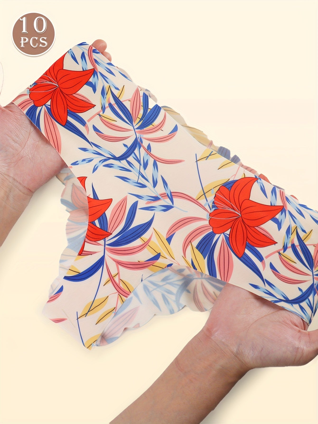 Women's Breathable Floral Art Print Low Waist Briefs Set of 10