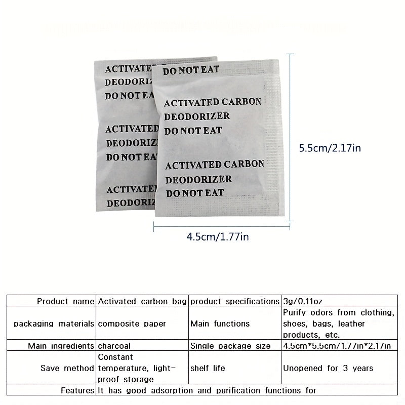 100-Pack Activated Carbon Air Purification Bags for Odor Removal in Home Car Wardrobe