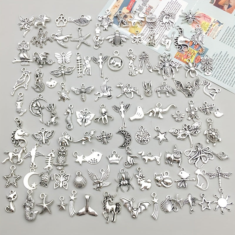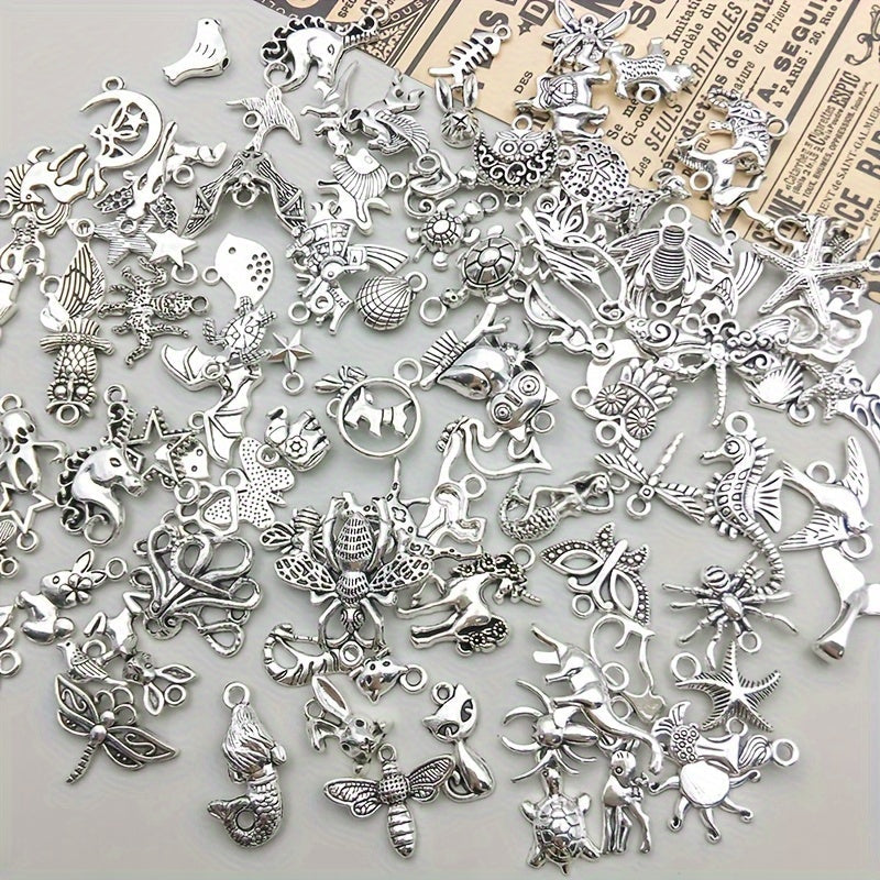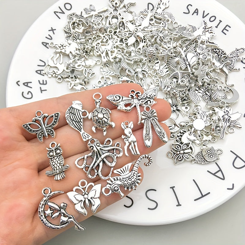 100 Pieces Metal Mixed Jewelry Charms Vintage Animal Charms for DIY Necklace Making