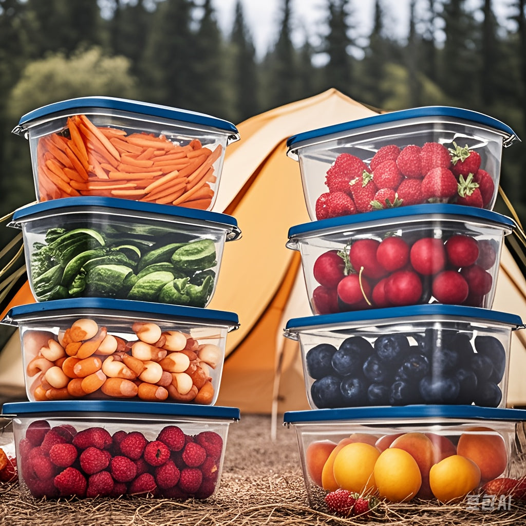 10-Piece Reusable Clear Plastic Food Storage Containers with Blue Lids for Kitchen Snacks and Produce