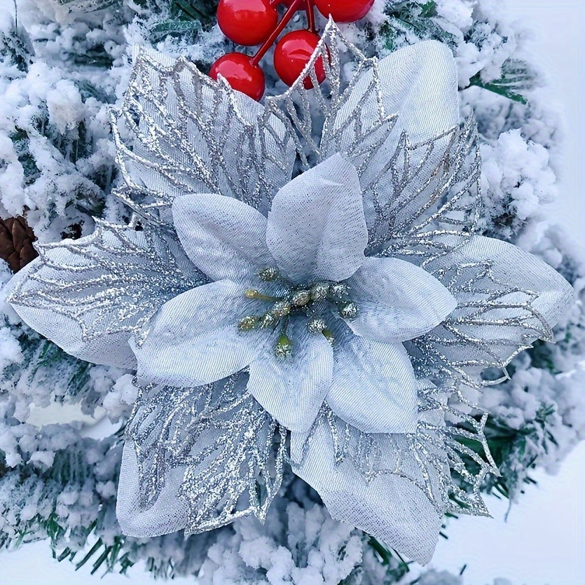 10pcs 15cm Christmas Garland with Multi-Color Hollow Flowers and Gold Accents