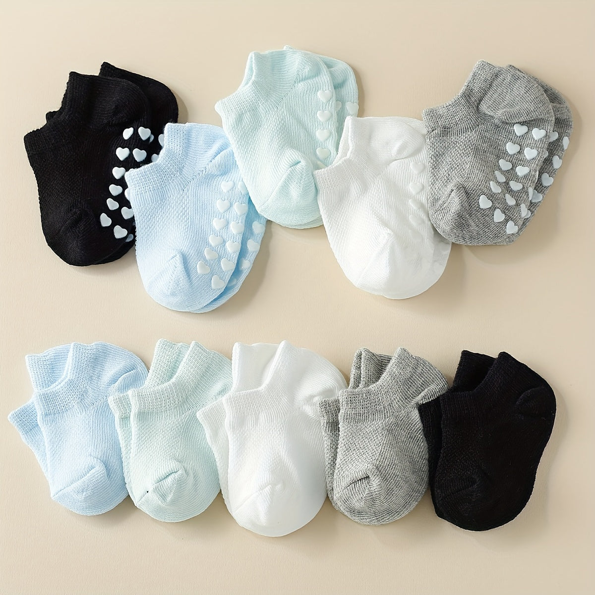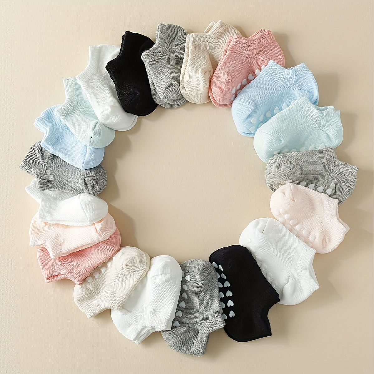 10 Pcs Kids Ankle Socks Cotton Blend Non-Slip Breathable Mesh Solid Color Spring Fall