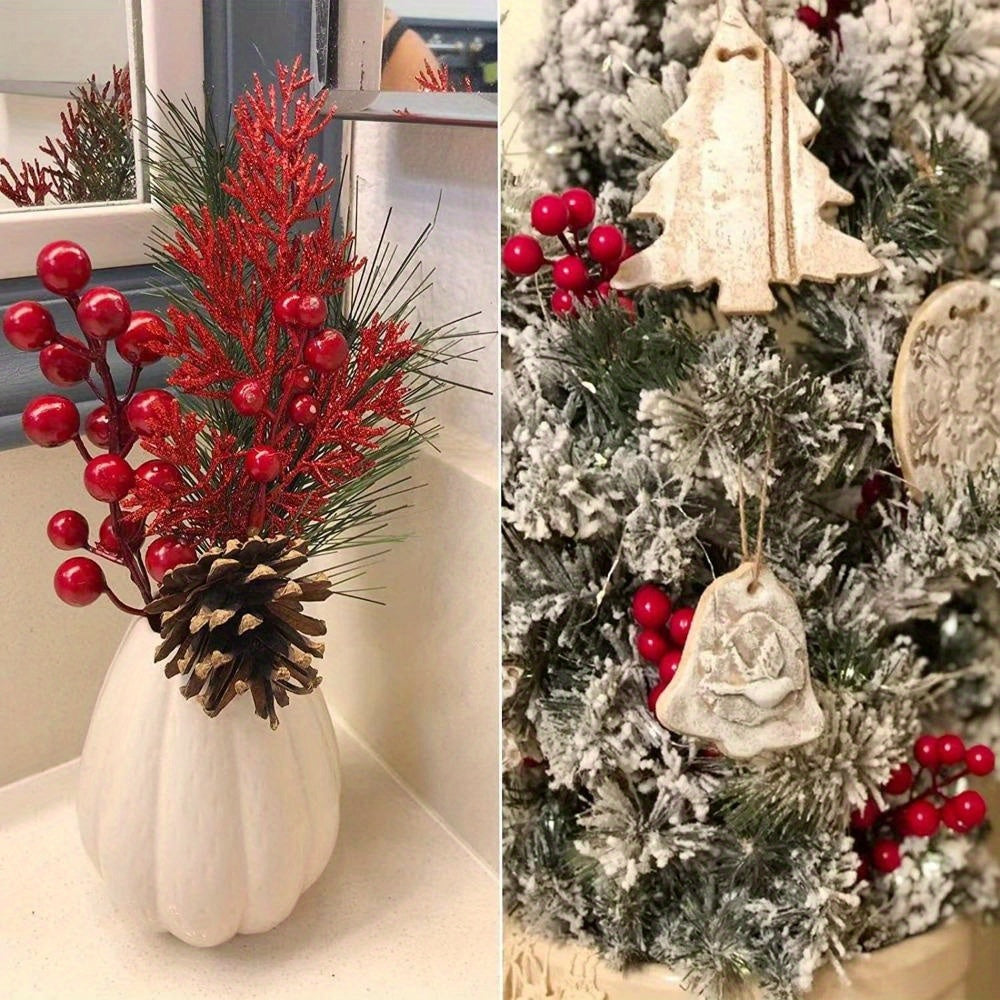 10 Pieces Red Berry Picks Artificial Cherry Branches with Green Leaves for Holiday Decor