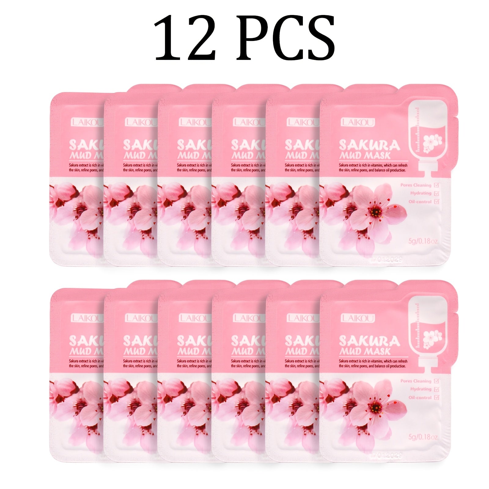 12 Pack 5g Sakura Mud Masks Travel Size Deep Cleansing Moisturizing Oil Control