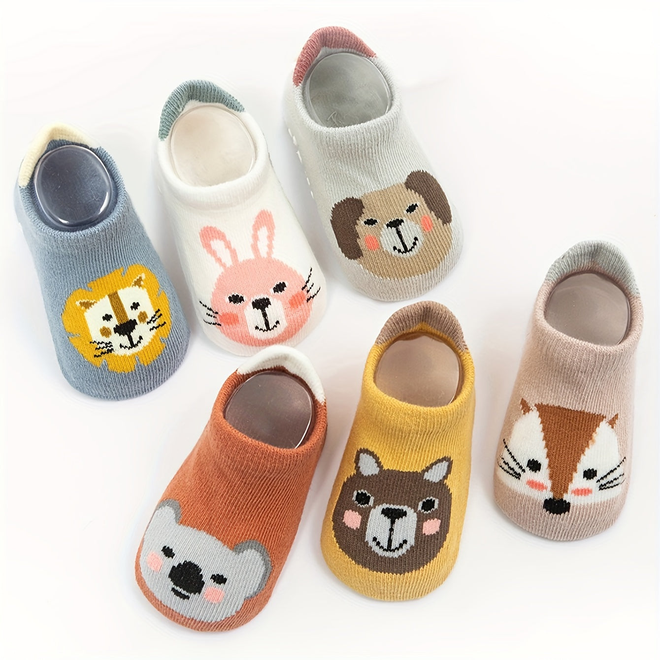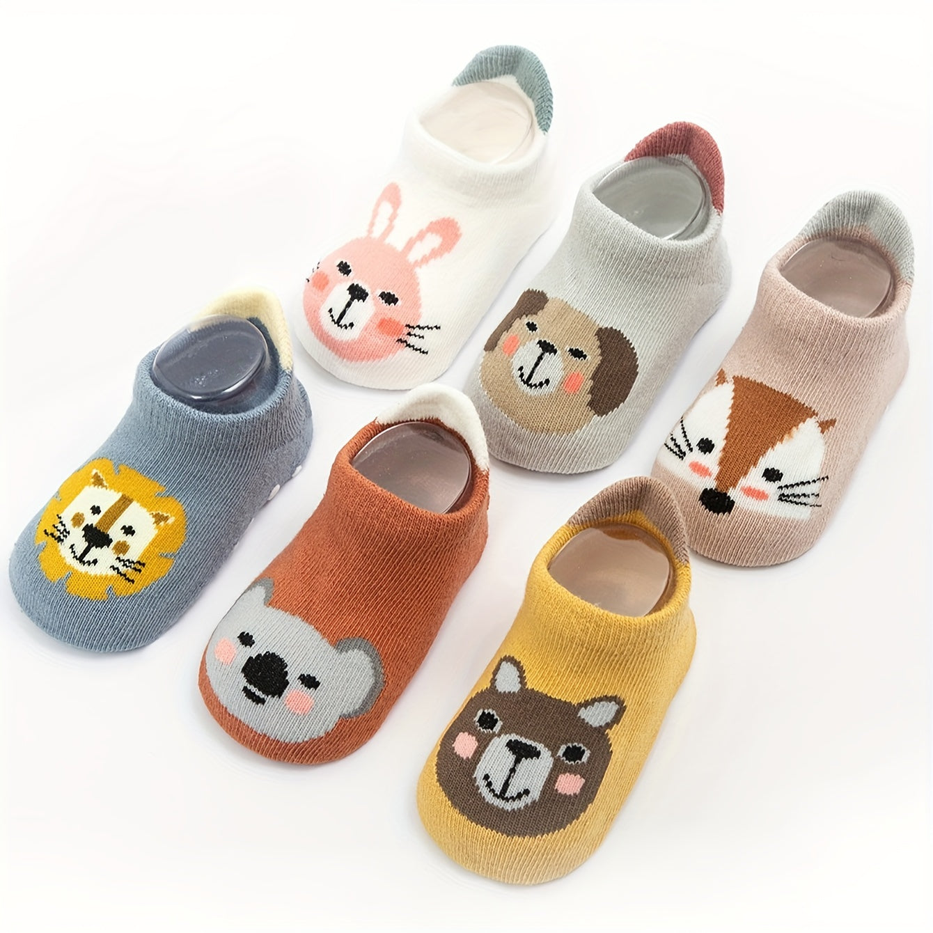 12 Pairs Boys' Cartoon Animal Pattern Non-Slip Floor Socks Breathable Spring Summer