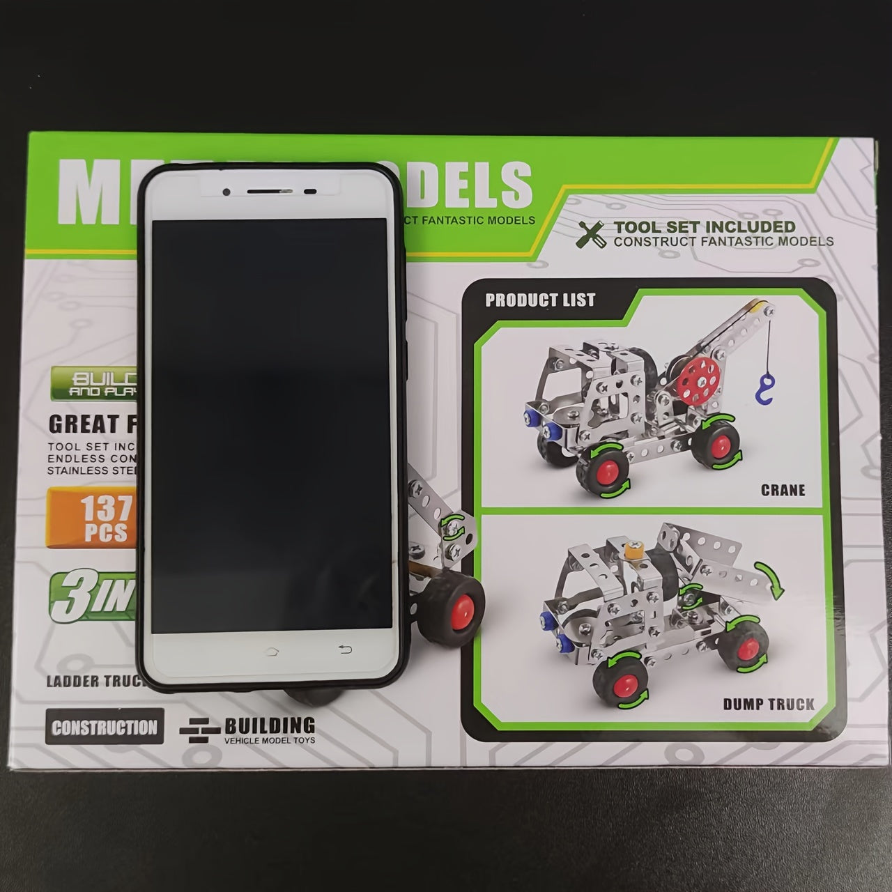 137-Piece Metal Car Building Blocks Set for Kids Ages 3+ Vehicles Toy Gift