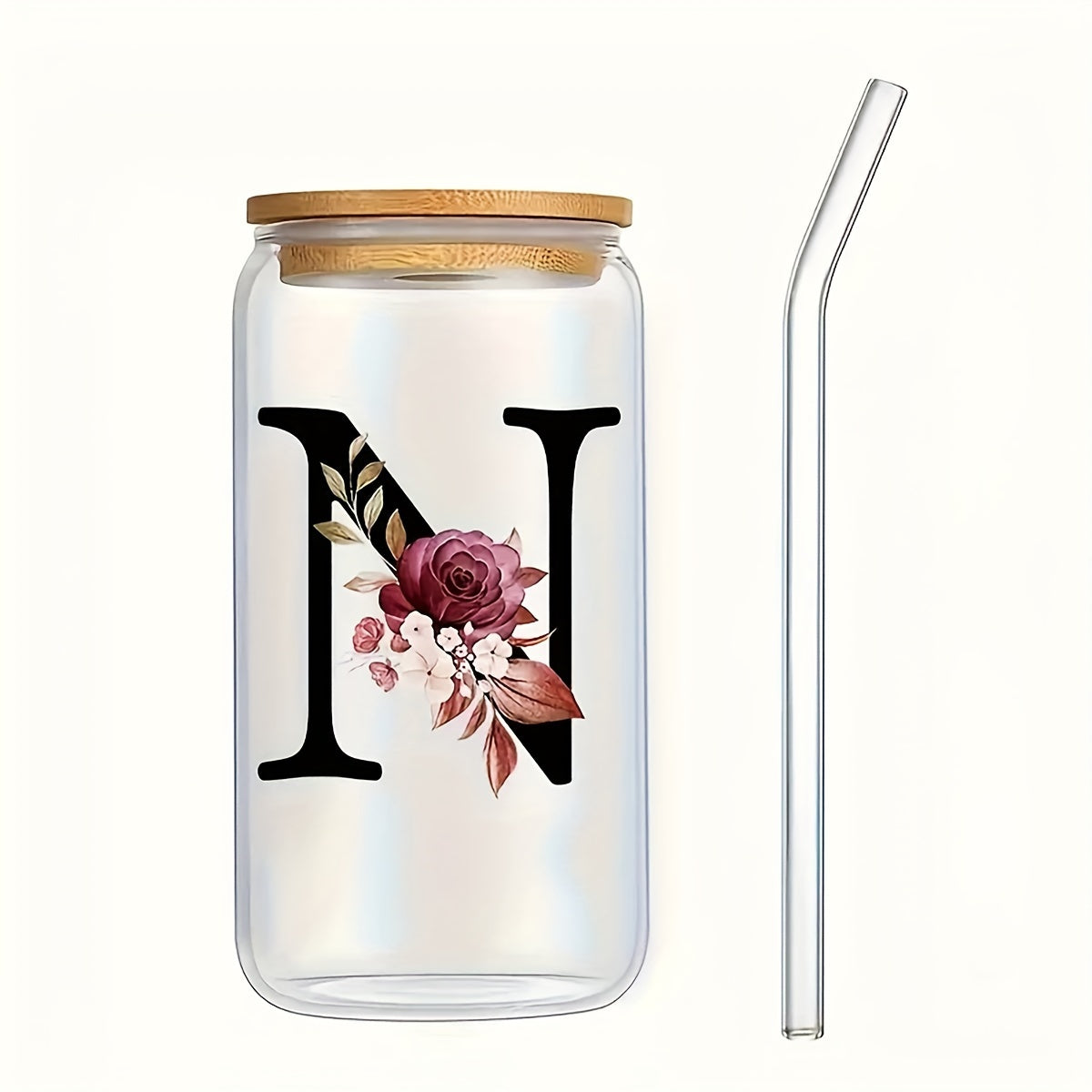 16oz Frosted Glass Cup with Bamboo Lid for Outdoor Camping
