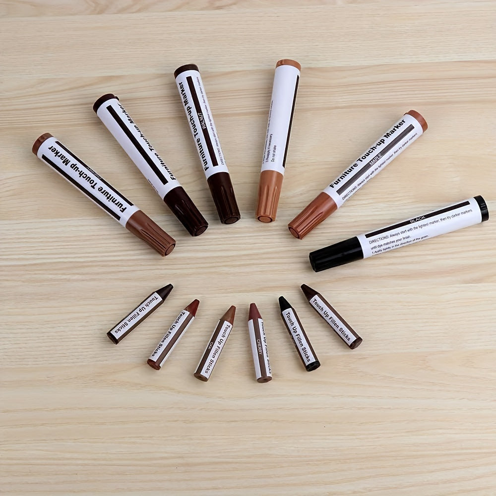 16pcs Furniture Repair Kit with Wooden Marking Pen and Wax Stick for Wooden Surfaces Floors Tables Carpentry