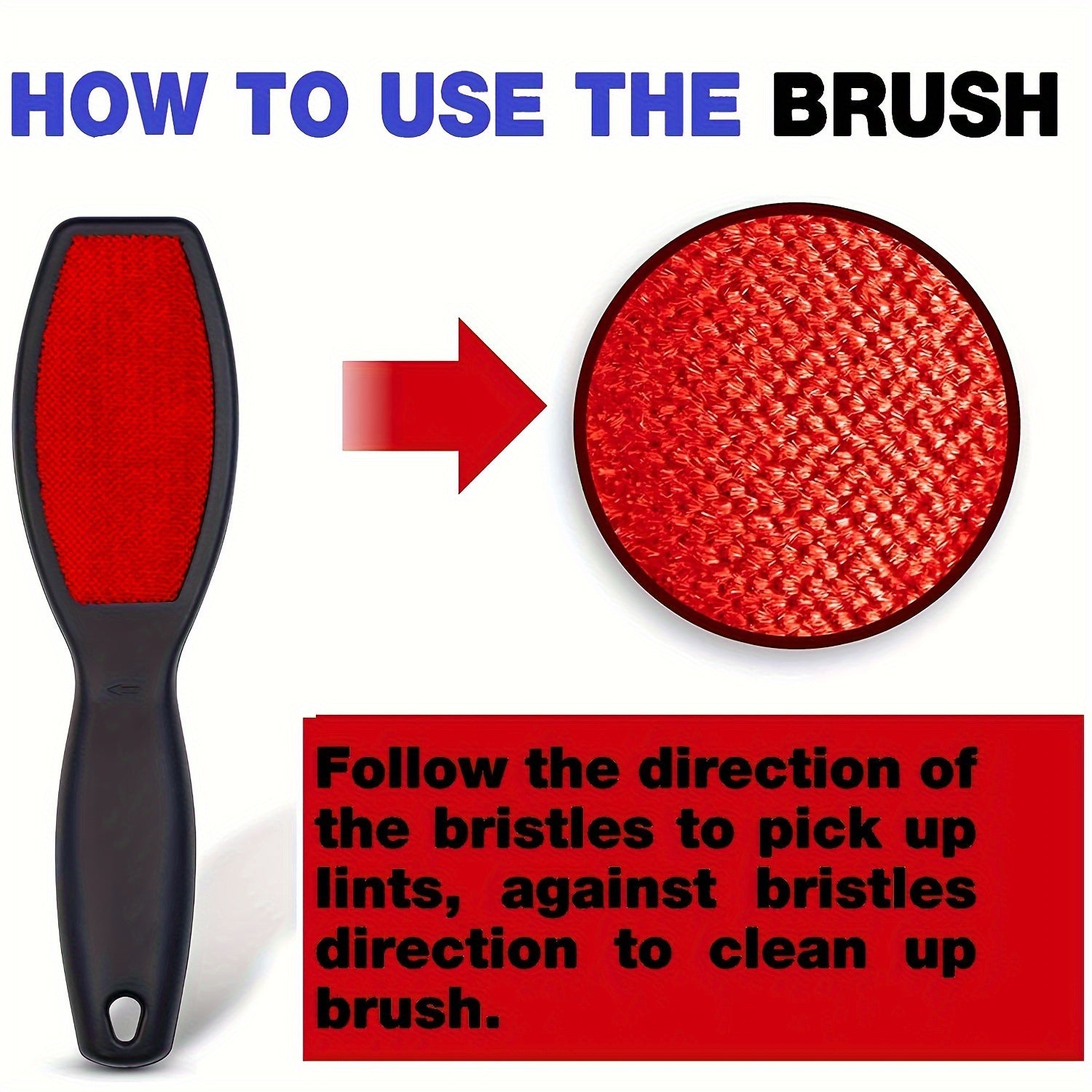 Double-Sided Pet Hair Remover Brush Red Black Reusable Lint Brush for Clothes Furniture Carpets