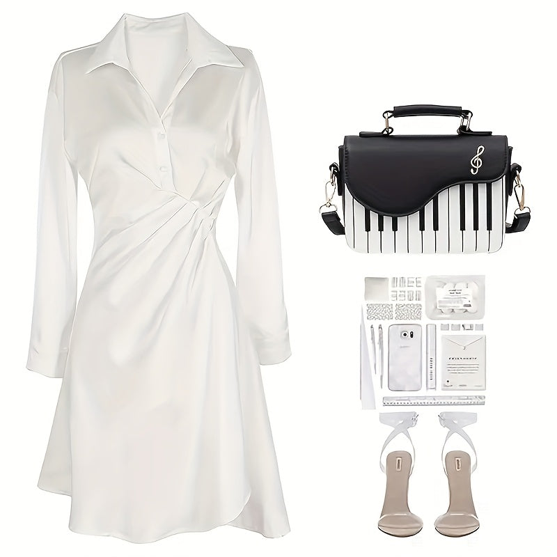 Women's Black and White Plaid Shoulder Bag with Adjustable Strap Zipper Closure