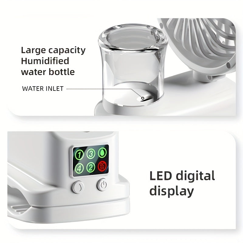 2-in-1 Fan Humidifier Portable Desktop Cooling Fan with 4-Speed Adjustable Wind and 2-Level Humidity Silent 360° Rotation Rechargeable Battery