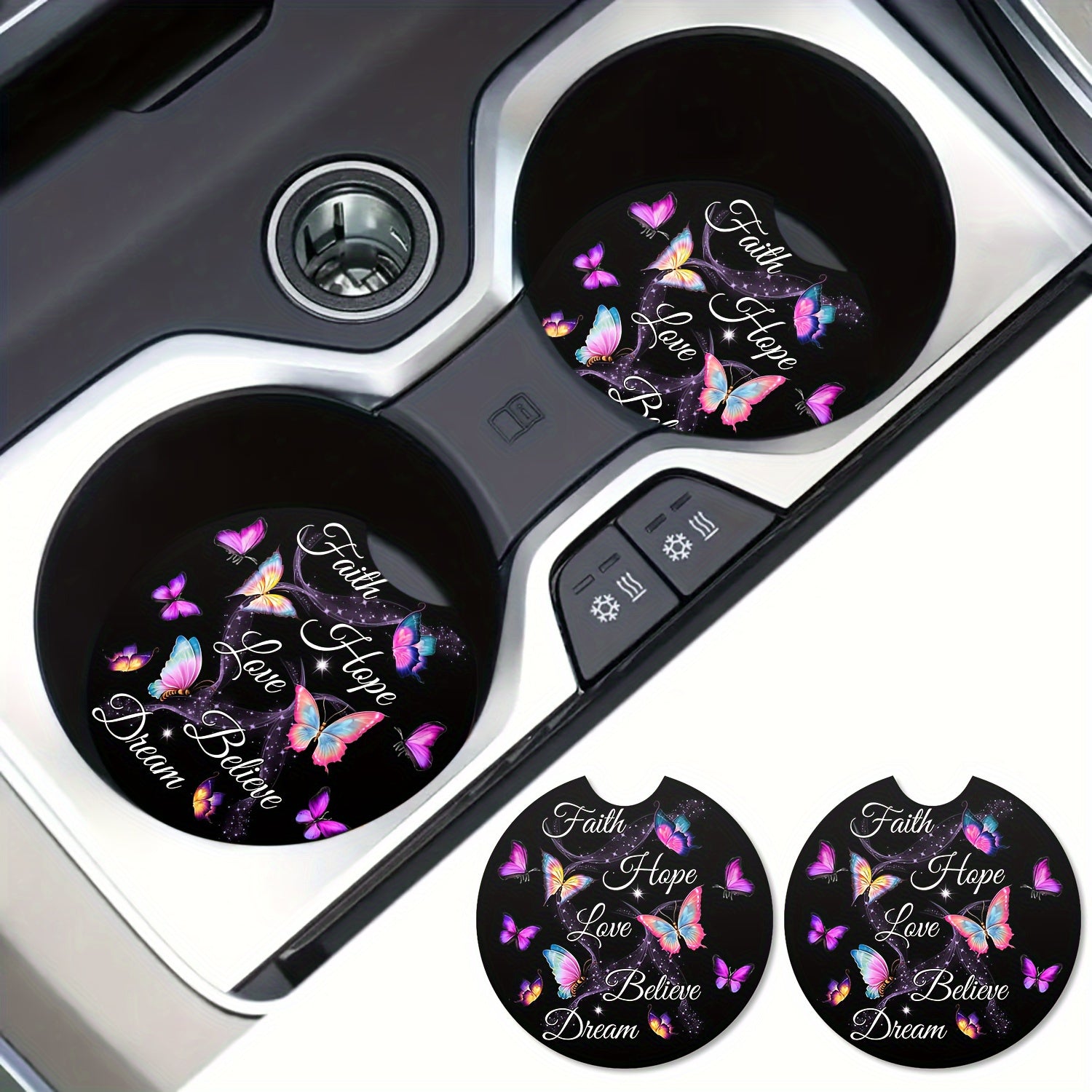 2 Pack Butterfly Car Coasters Absorbent Non-Slip Dry Cup Holders