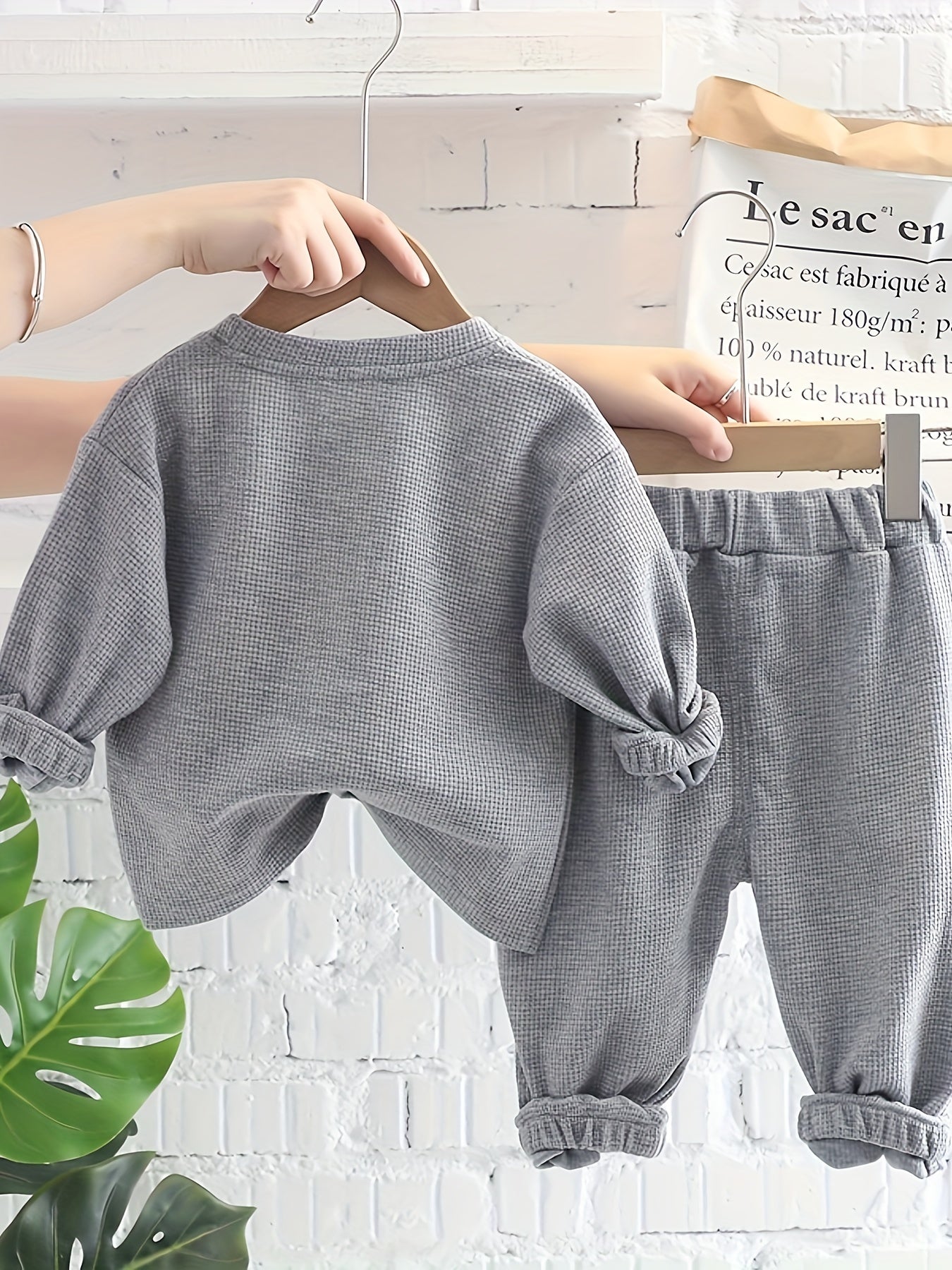 Baby Boy's Waffle Texture Casual Set Includes Long Sleeve Top and Pants for Spring Fall Outdoor Wear