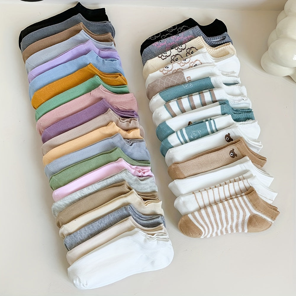 20 Pairs Women's Cartoon Pattern Short Socks Breathable Soft and Comfortable