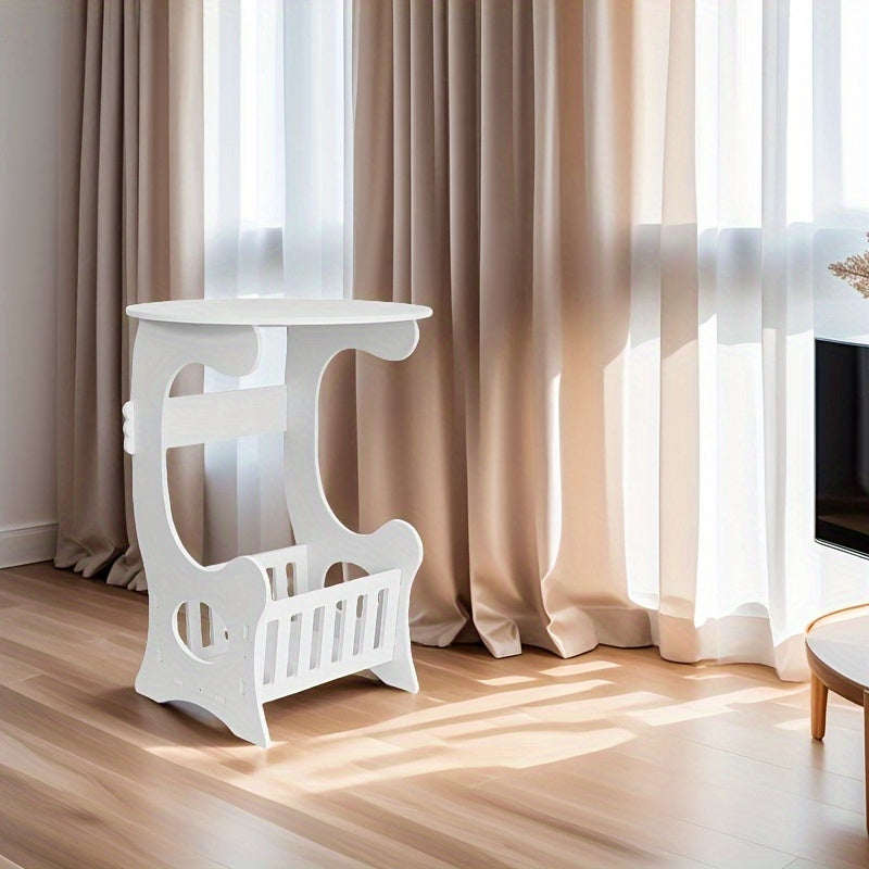 2024 Round Bedside Table with Tiered Shelf Plastic Polished Finish Space-Saving Storage