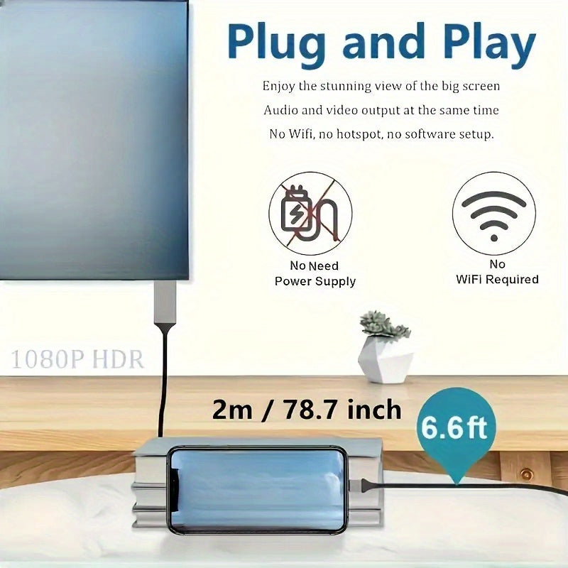 2m High-Definition USB-C to HDMI Adapter Cable for Laptop Mobile Phone Tablet