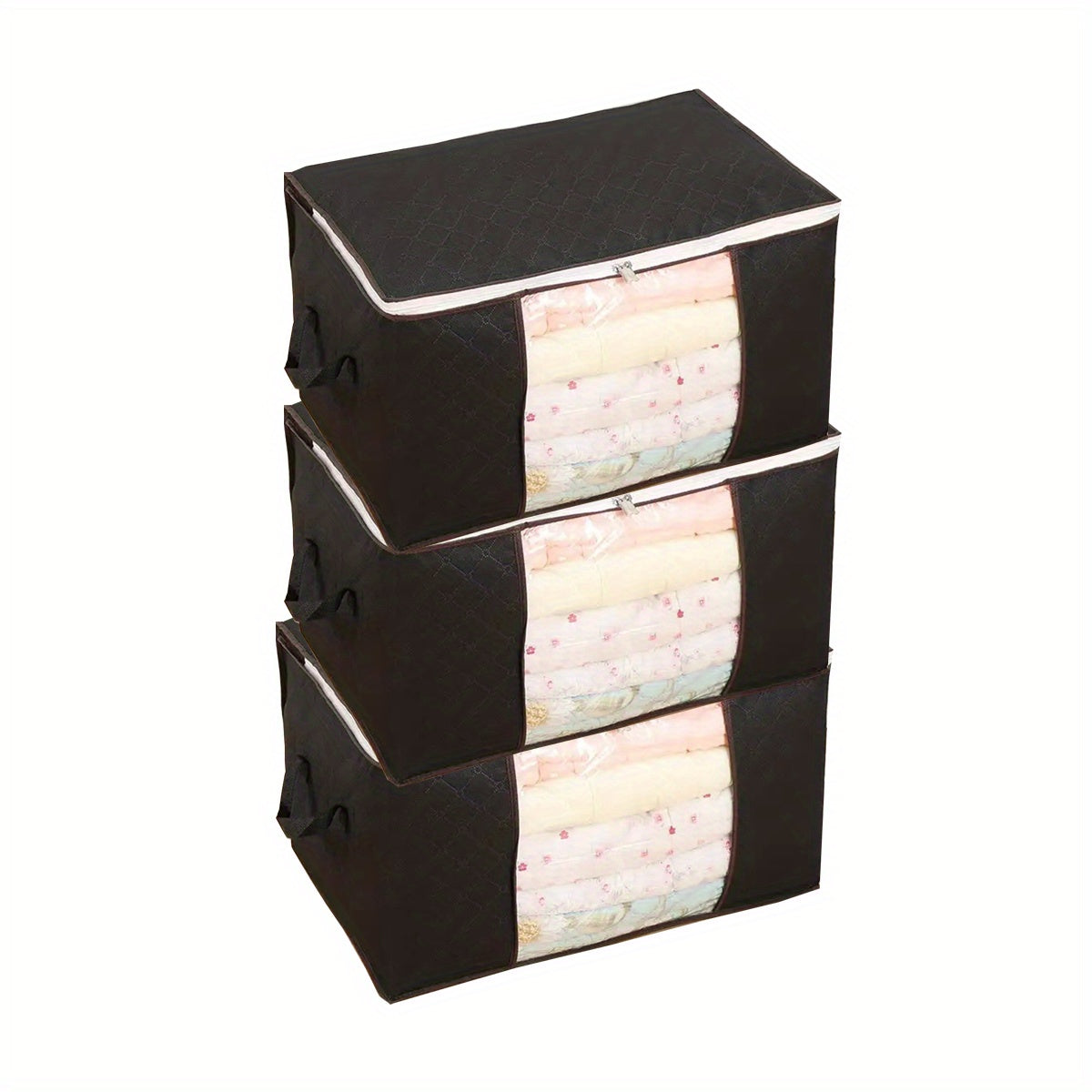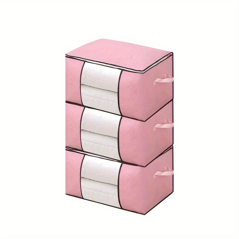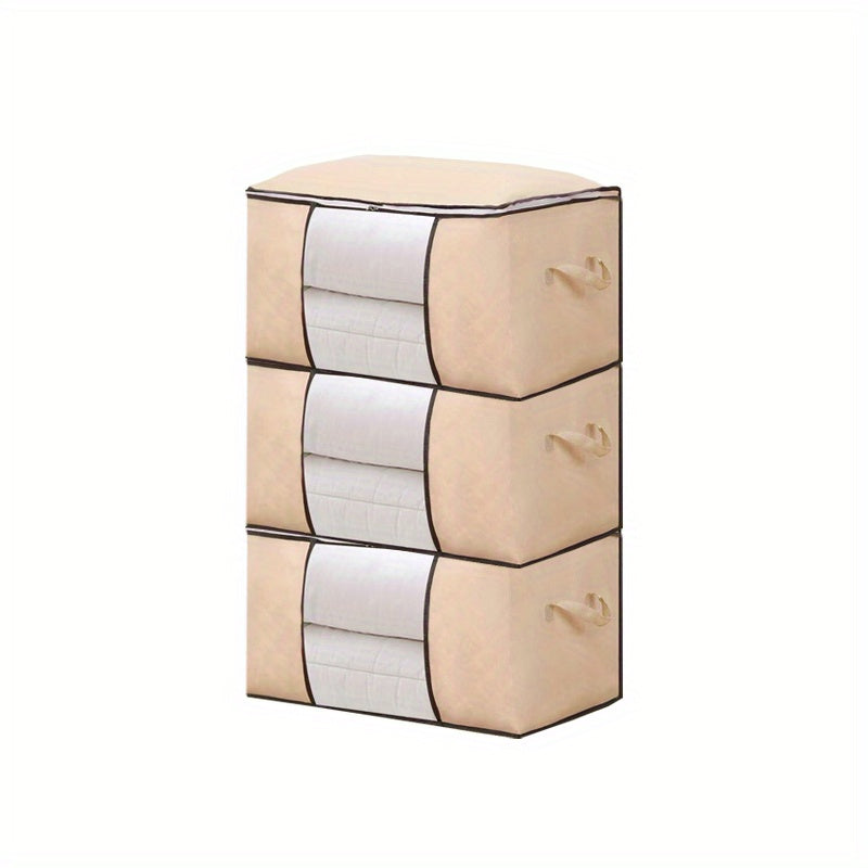 3 Pack Large Grey Storage Bags with Reinforced Handles for Clothing and Bedding