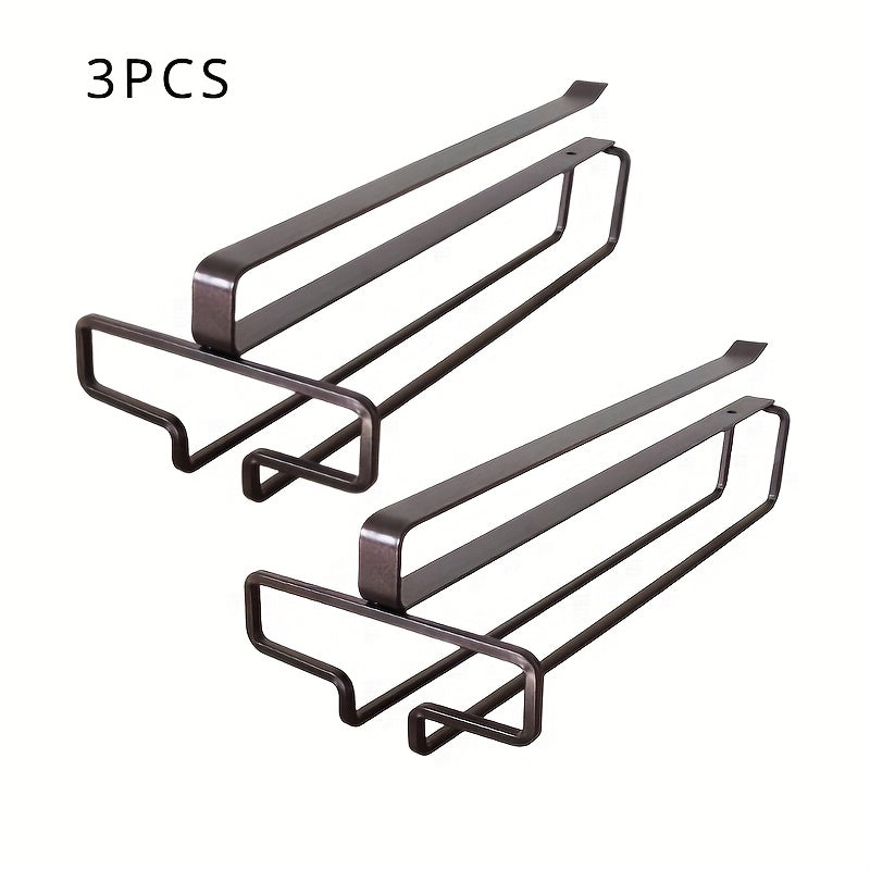 3-Piece Metal Space-Saving Wine Glass Rack No-Drill Upside-Down Stemware Organizer for Kitchen and Bar Cabinets