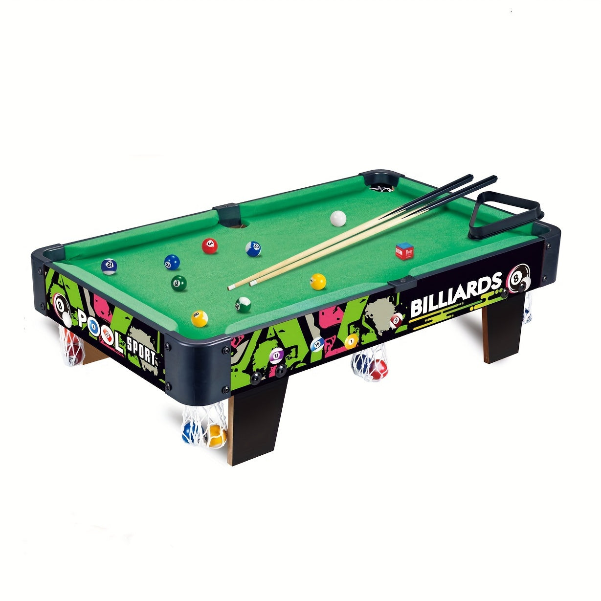 Self-Assembled Wooden Pool Table Set with Cues and 15 Balls for Indoor Play Multiple Sizes
