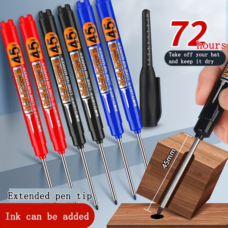 3PCS Multi-Color Marker Pen Set 45mm Deep Hole Long Nib Carpentry