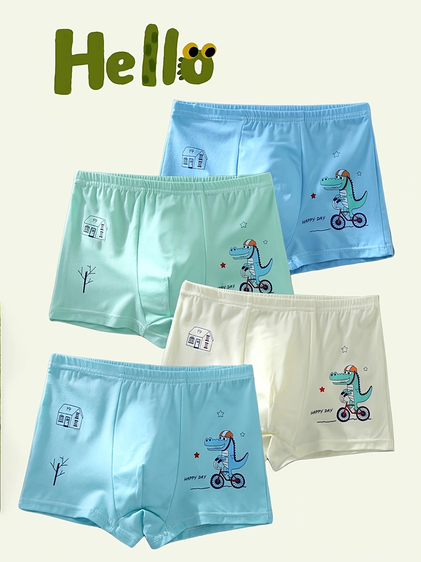 4-Pack Boys' Boxer Briefs Cartoon Dinosaur Print Breathable Polyester Stretchy Fit Sports Underwear