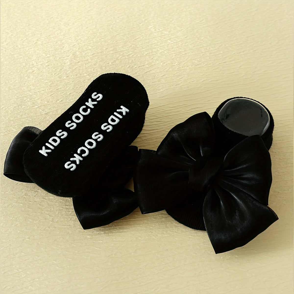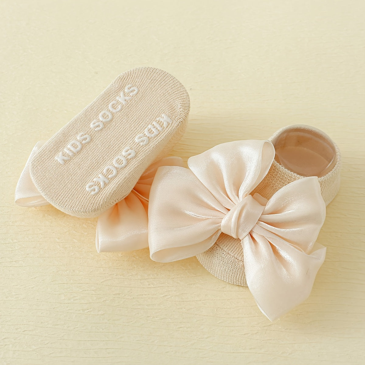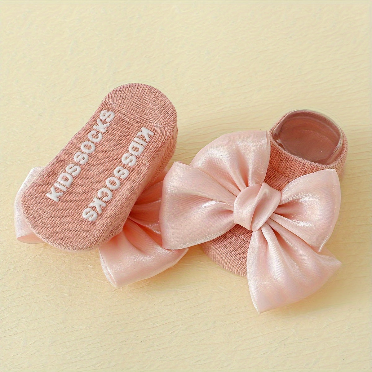 Kids Girls 4 Pairs Cotton Blend Anti-Skid Socks with Bowknot and Dot Glue