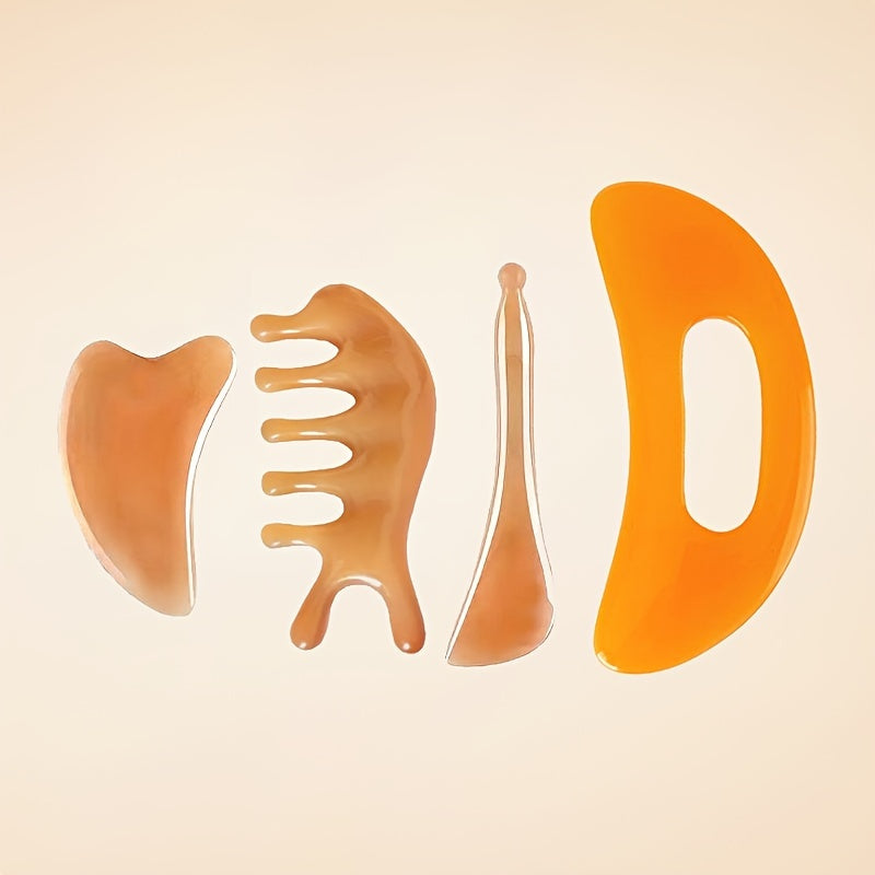 4-Piece Gua Sha Massage Tool Set with Large Curved Lazy Board and Resin Scraper for Face and Nose Relaxation