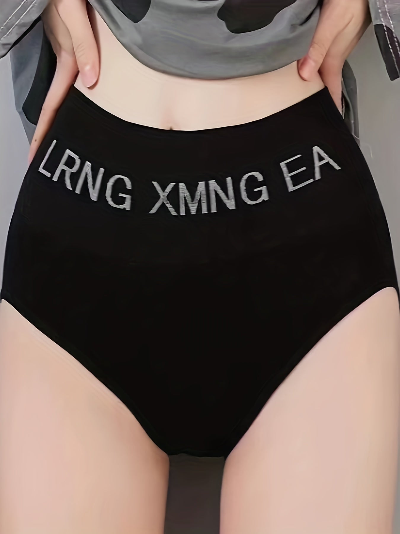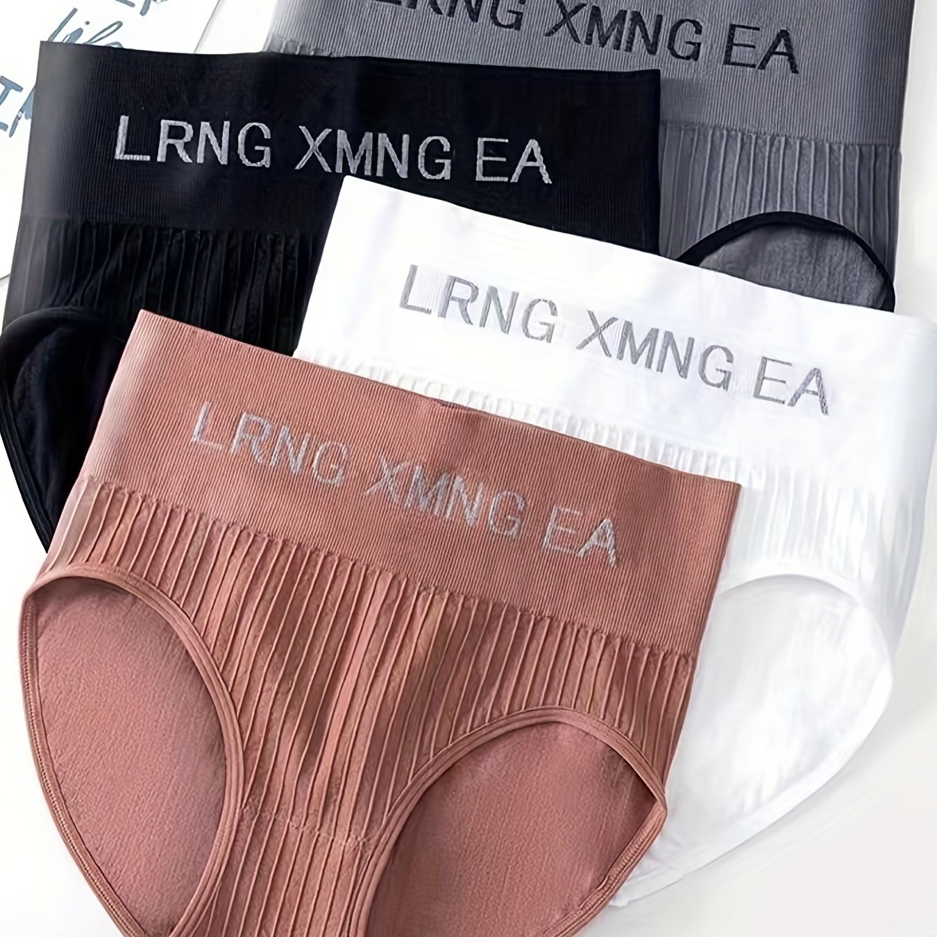 Women's High-Waisted Briefs Set 4 Pack Stripes Letter Print Breathable Nylon
