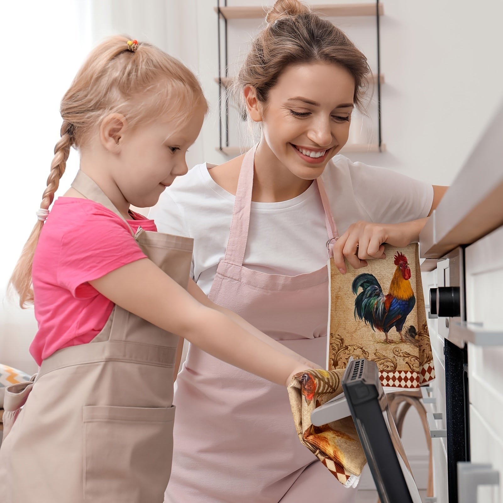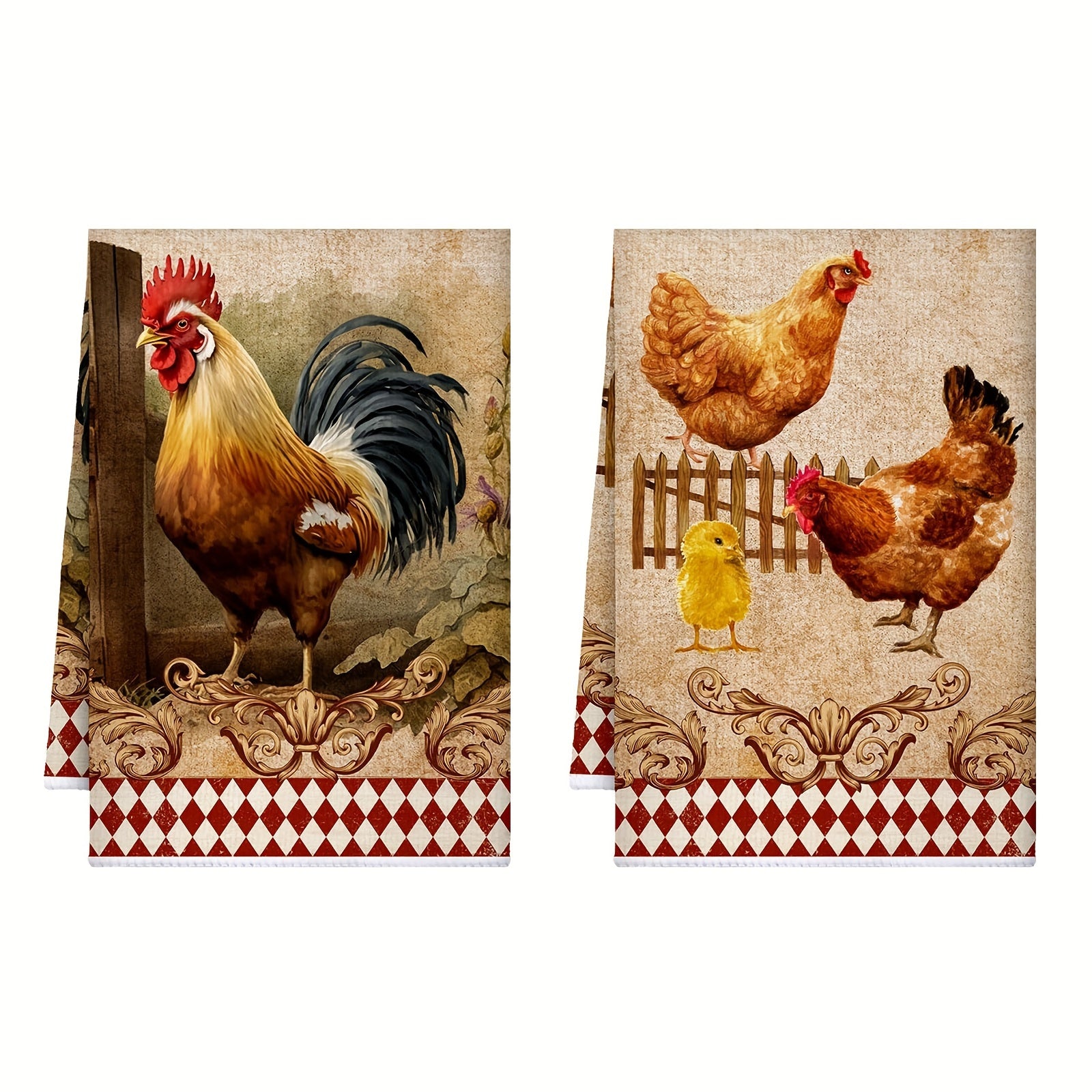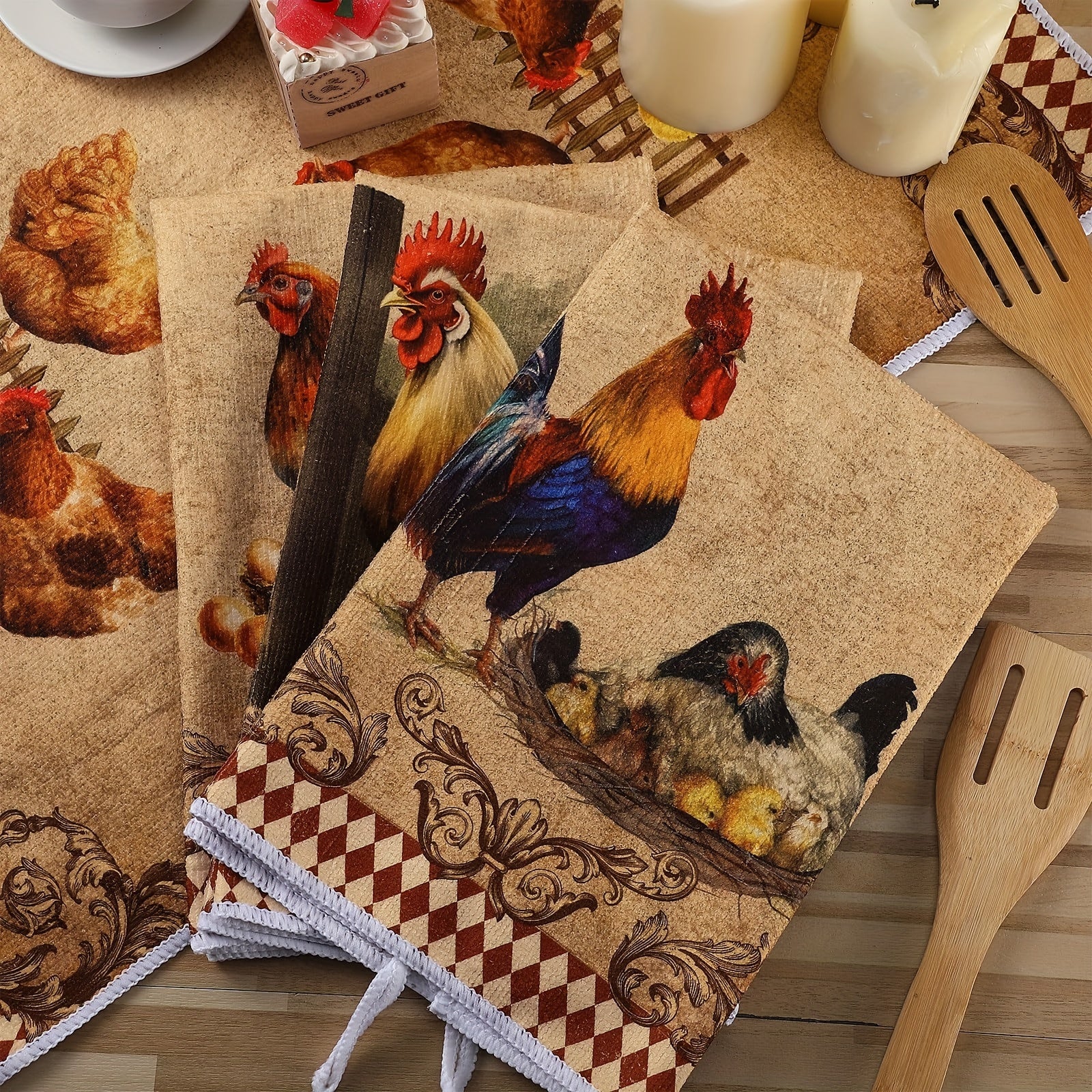 4pc Rustic Rooster Kitchen Hand Towels Polyester Dish Cloths Vintage Christmas Tea Towels