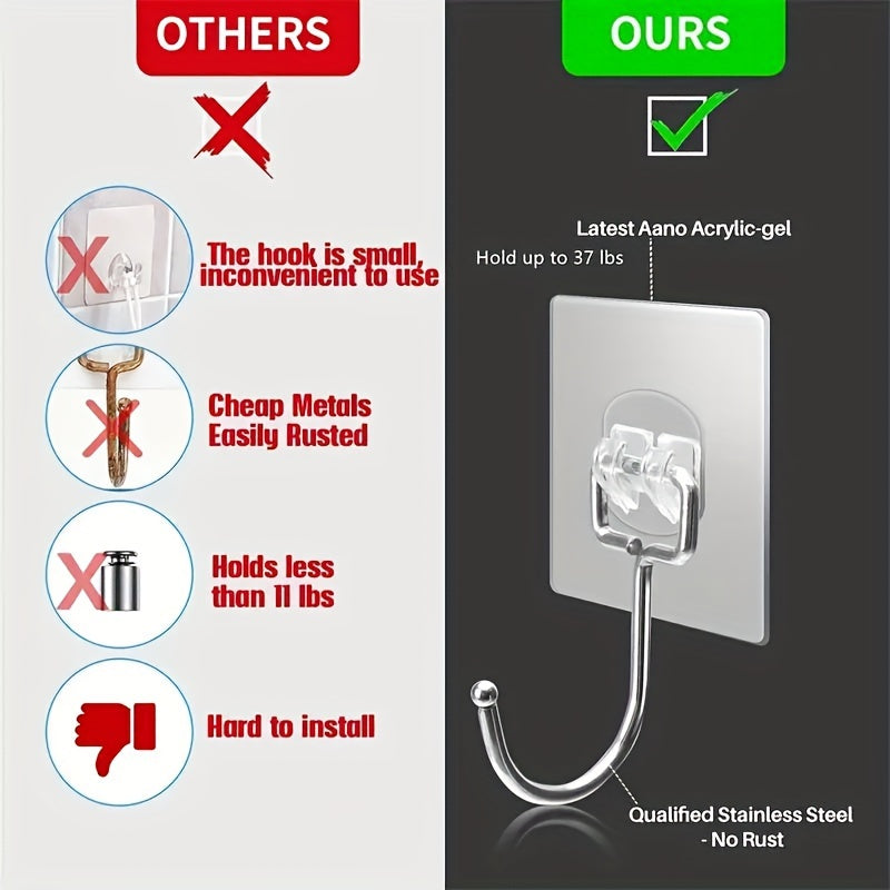 Large Stainless Steel Adhesive Hooks Waterproof Rust-Resistant for Kitchen Bathroom Home Office