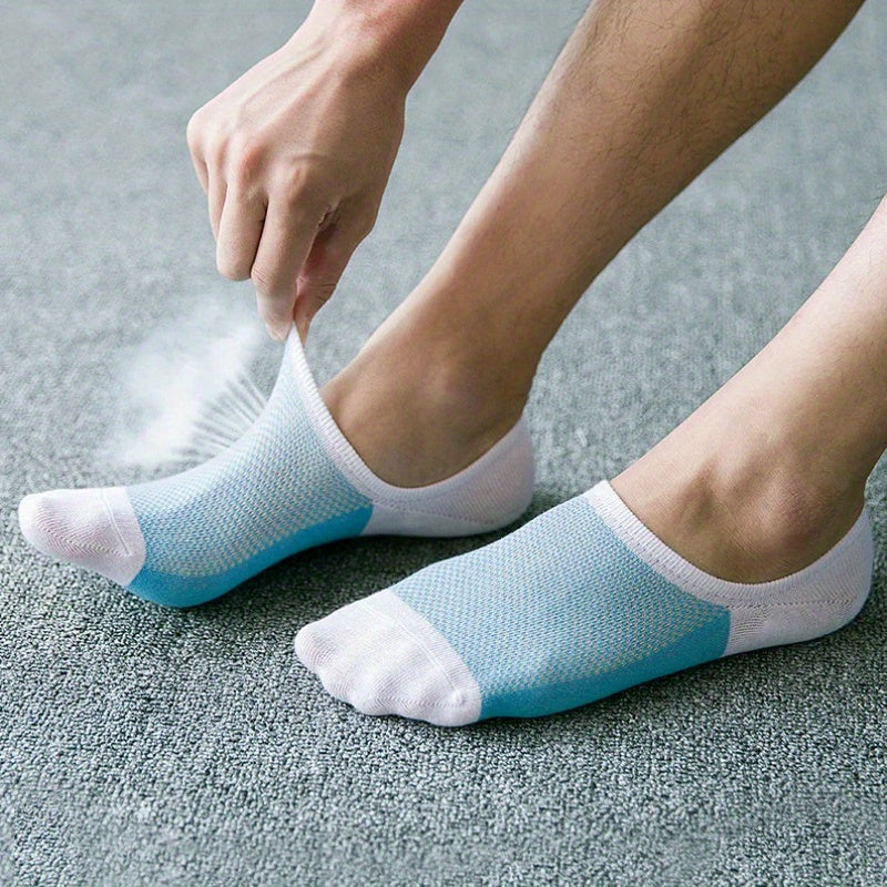 Men's Color Block Liner Anklet Socks 5 Pairs Cotton Blend Breathable Outdoor