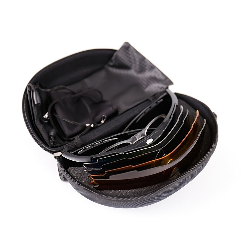 5-Piece Outdoor Riding Sports Glasses Set with Interchangeable Lenses and Accessories