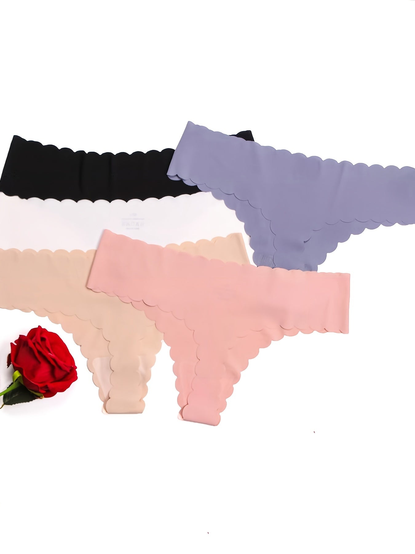 Women's Seamless Low Waist Thongs with Scallop Trim and No Show Design