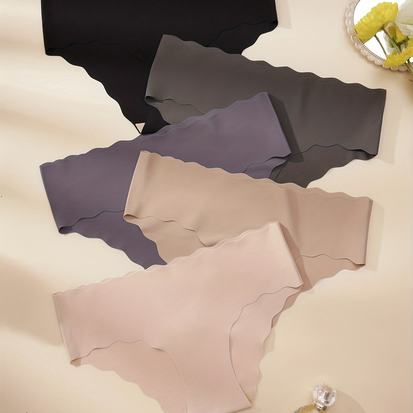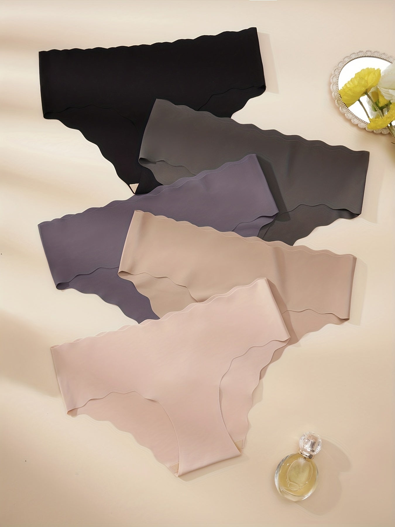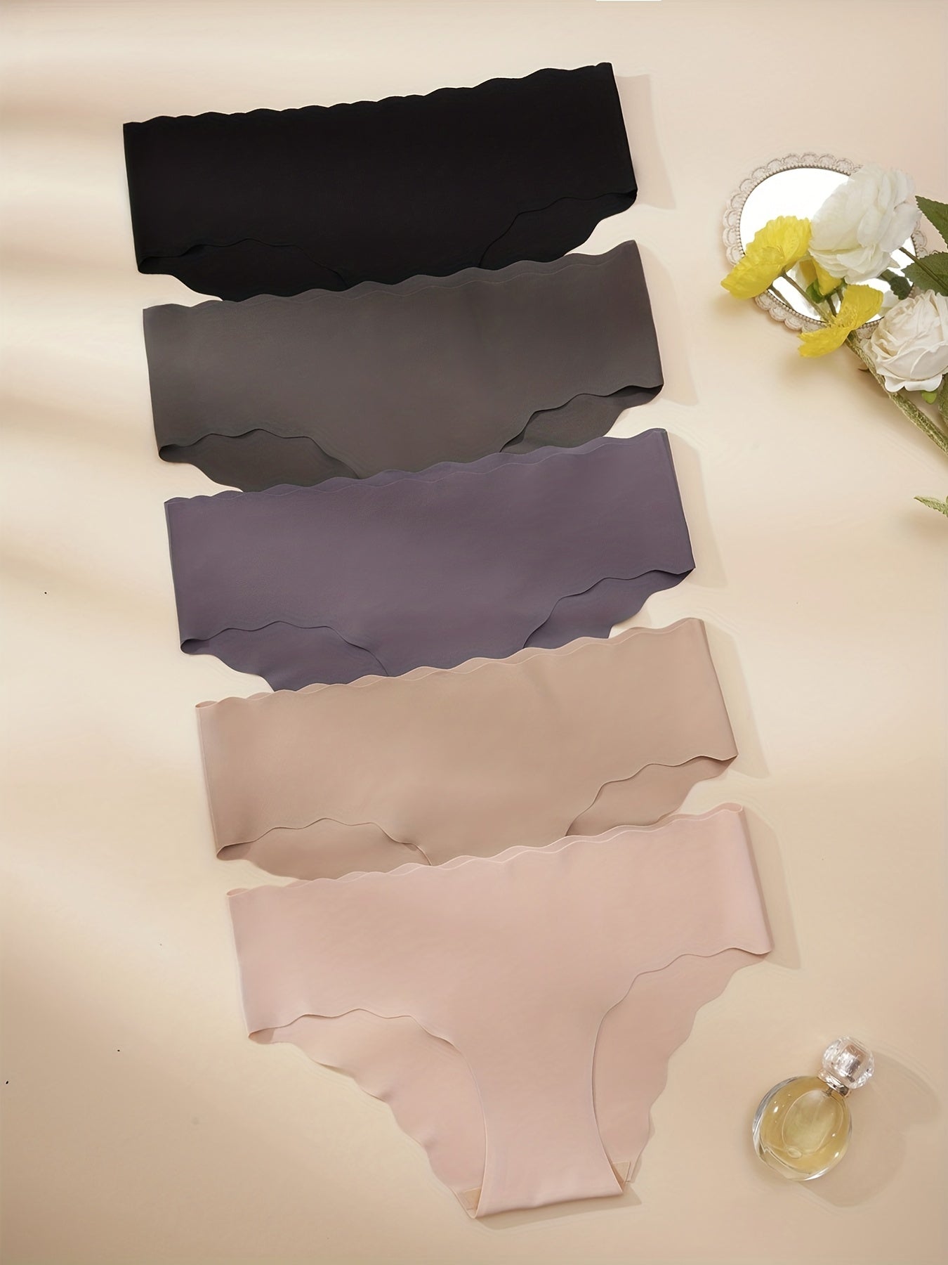 Women's Seamless Solid Briefs 5 Pack with Scallop Trim Breathable Comfortable