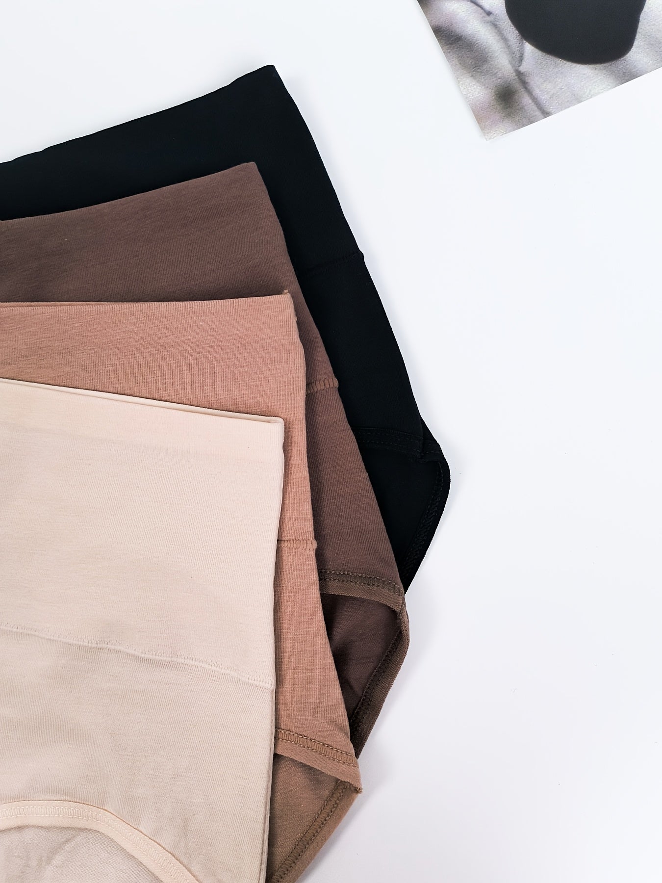 Women's High Waist Cotton Briefs 5-Pack Breathable Solid Color Underwear