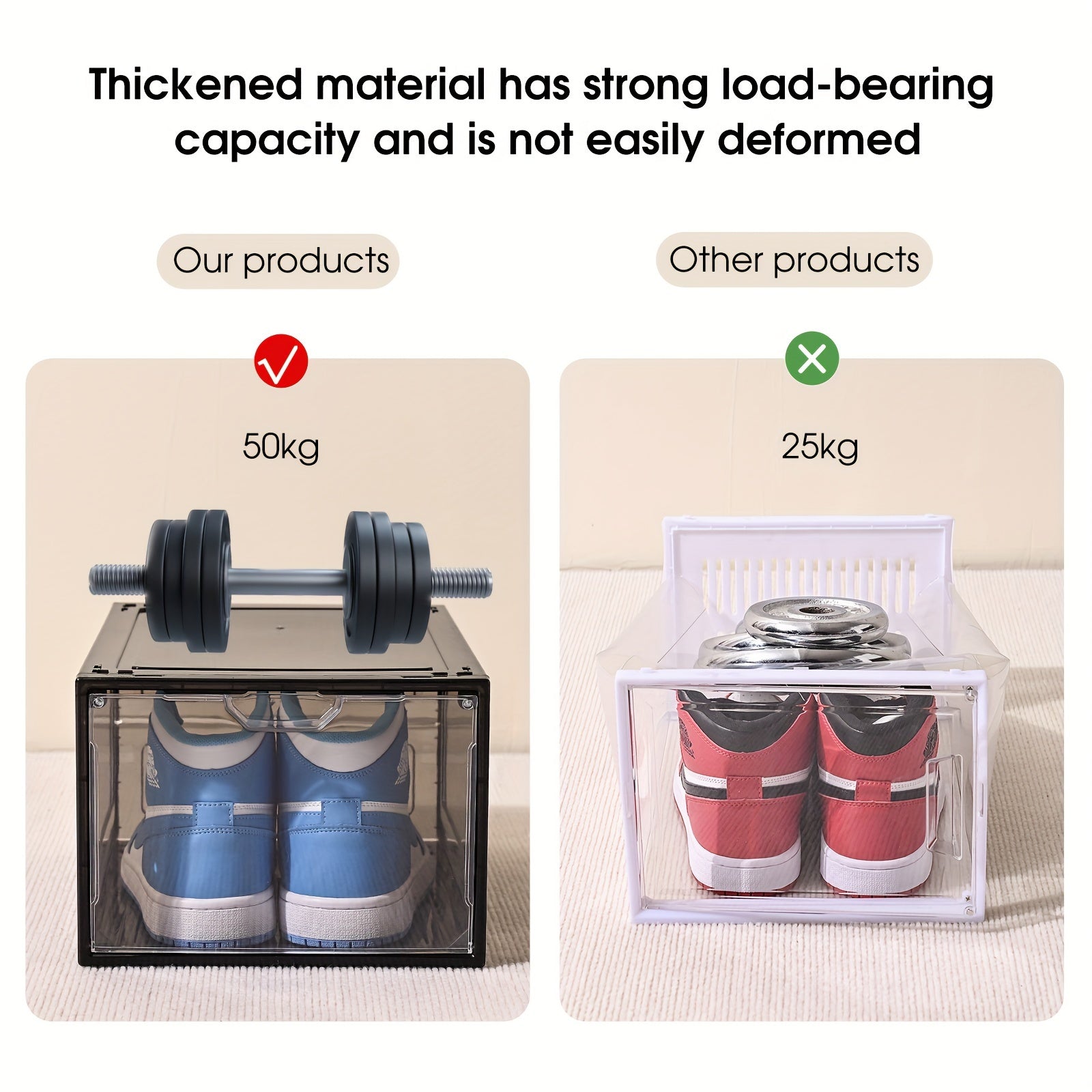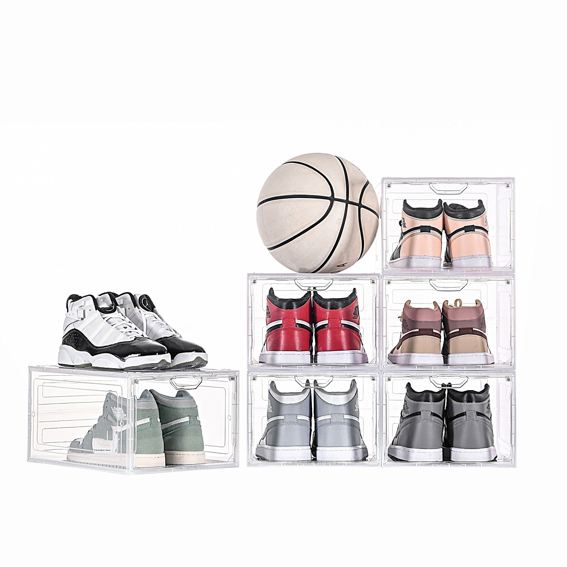 6-Pack Waterproof Plastic Shoe Organizer Boxes with Magnetic Closure Stackable Storage Cases in Black