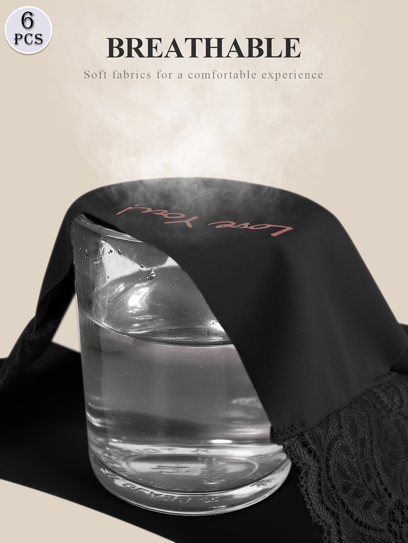 Women’s Lace Low Waist Briefs 6 Pack Solid Light Breathable Underwear