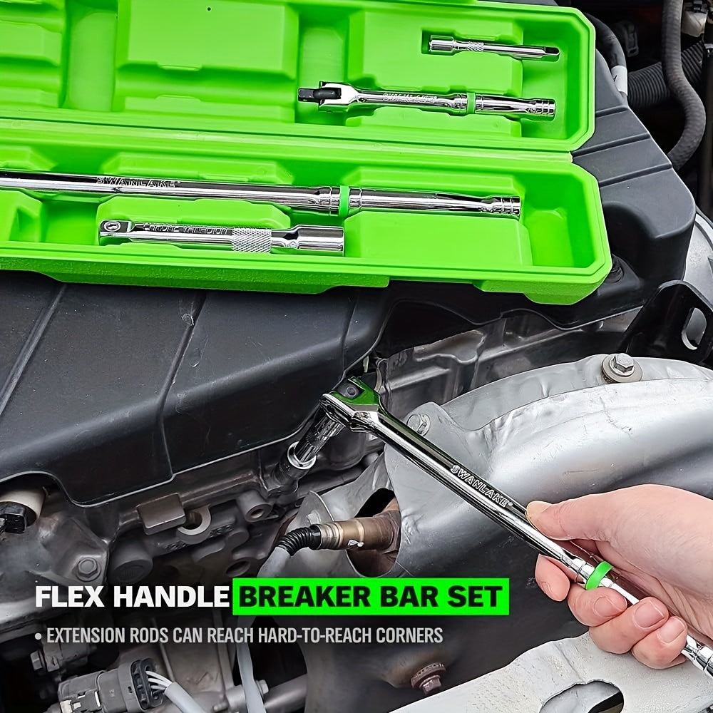 6-Piece Heavy Duty Breaker Bar Set 1/4, 3/8, 1/2 Inch Drive Steel
