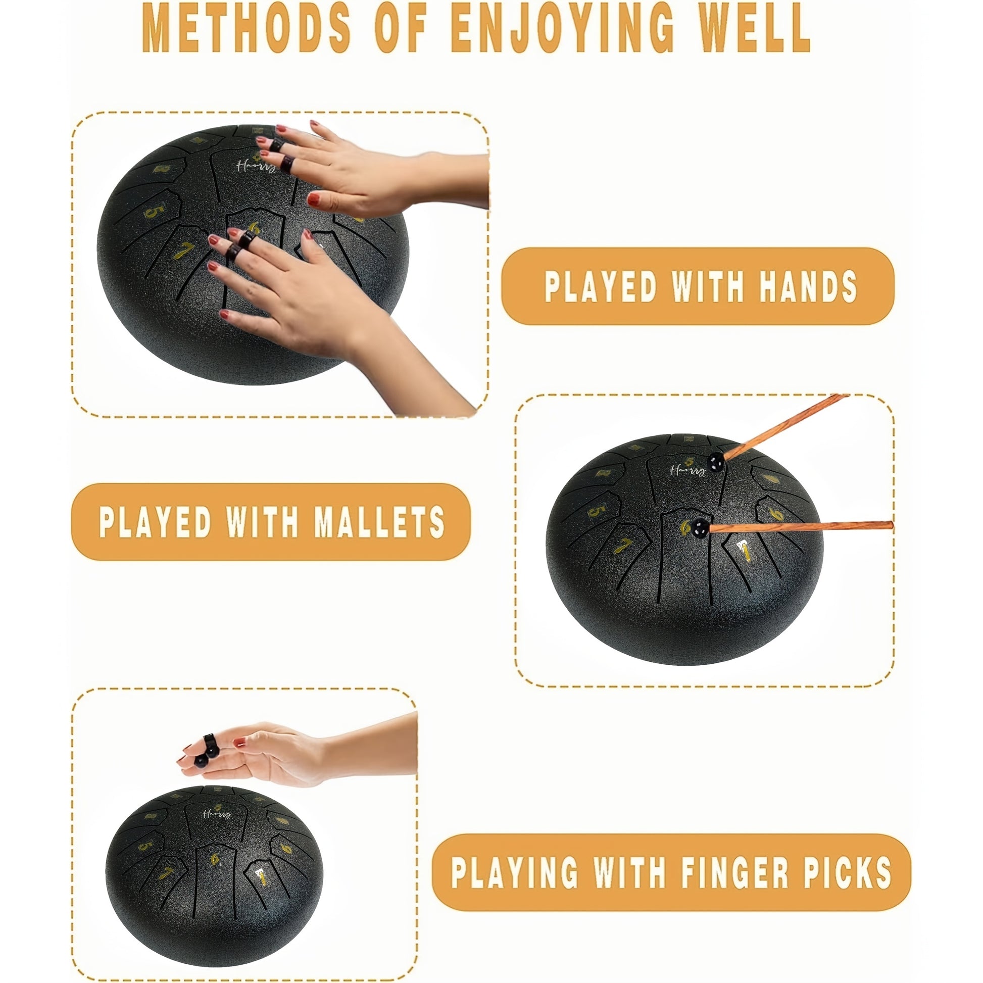 8-Inch Steel Tongue Drum for Beginners with Accessories Grey 11 Tones