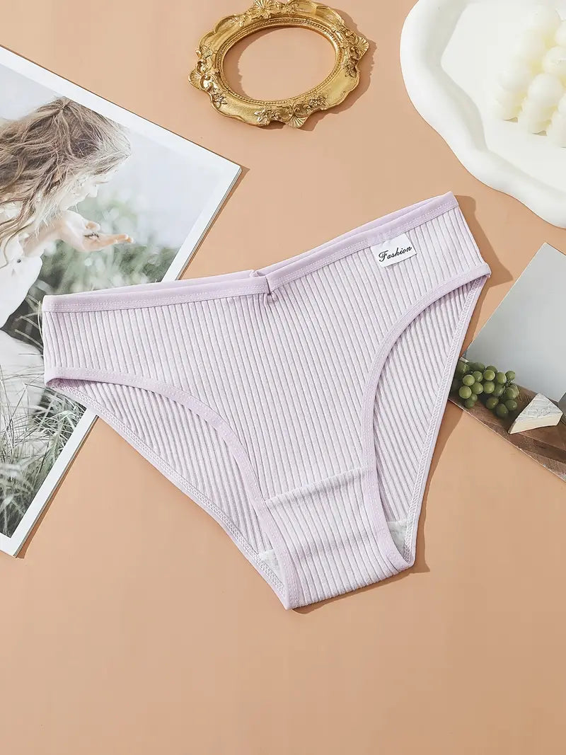8pcs Women's Seamless Ribbed Low Waist Bikini Panties Breathable Lingerie