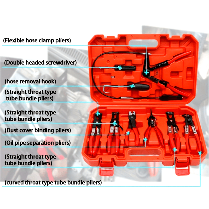 9-Piece Flexible Hose Clamp Pliers Set for Automotive Water Coolant Clamps