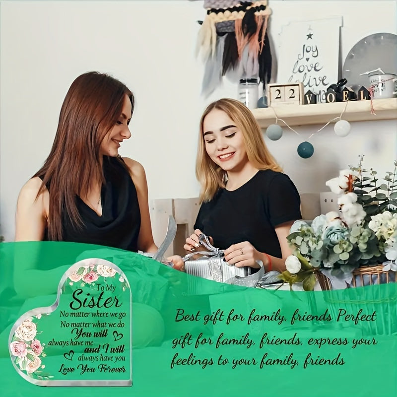 Acrylic Heart-Shaped Plaque with Pink Flower Print for Female Friendship and Gifts