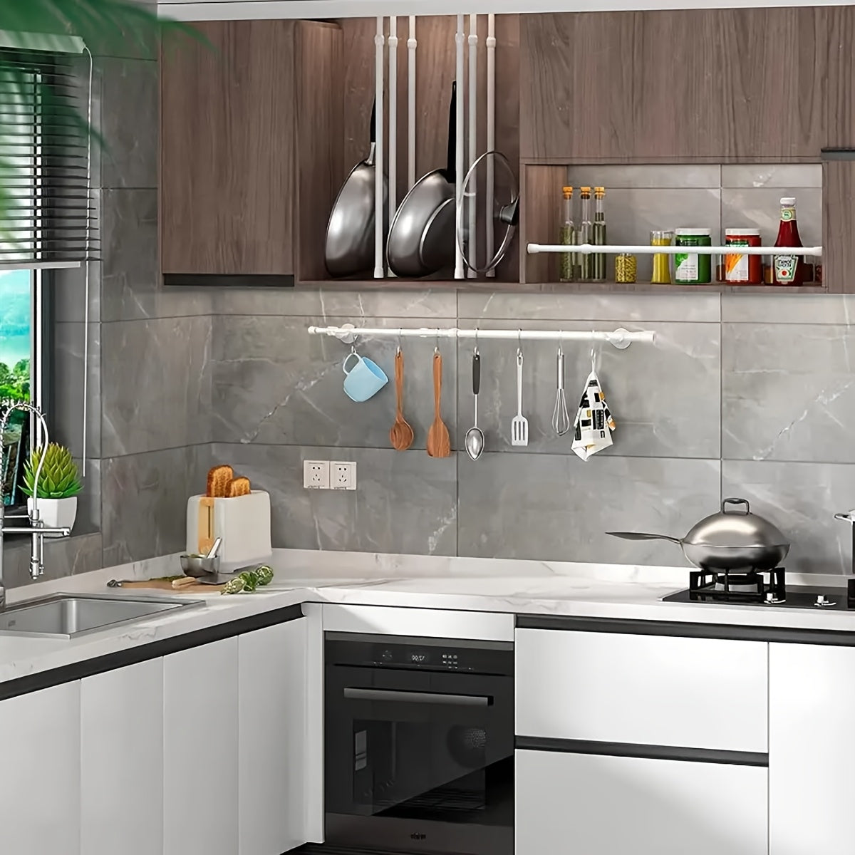 Adjustable Alloy Shower Rod No Drill Extendable from 99cm to 191cm Bathroom Closet Kitchen