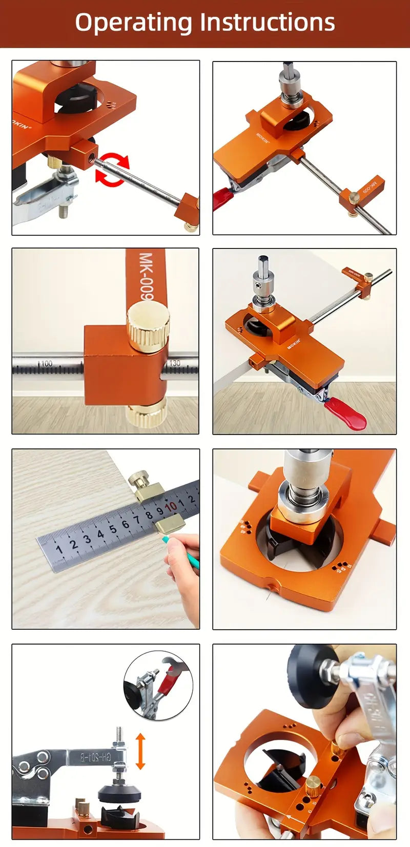 Adjustable Aluminum Cabinet Door Boring Jig for 35mm Hinge Hole Drilling Woodworking Tool